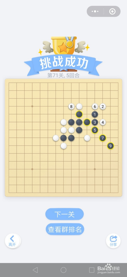 第71关按照下图中黑棋上的数字挨次下棋就能过关。