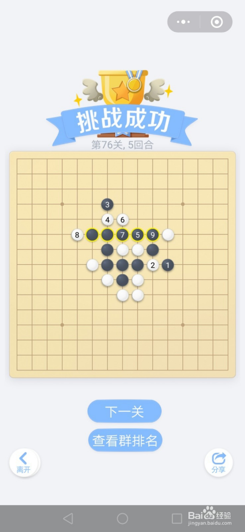 第76关按照下图中黑棋上的数字挨次下棋就能过关。