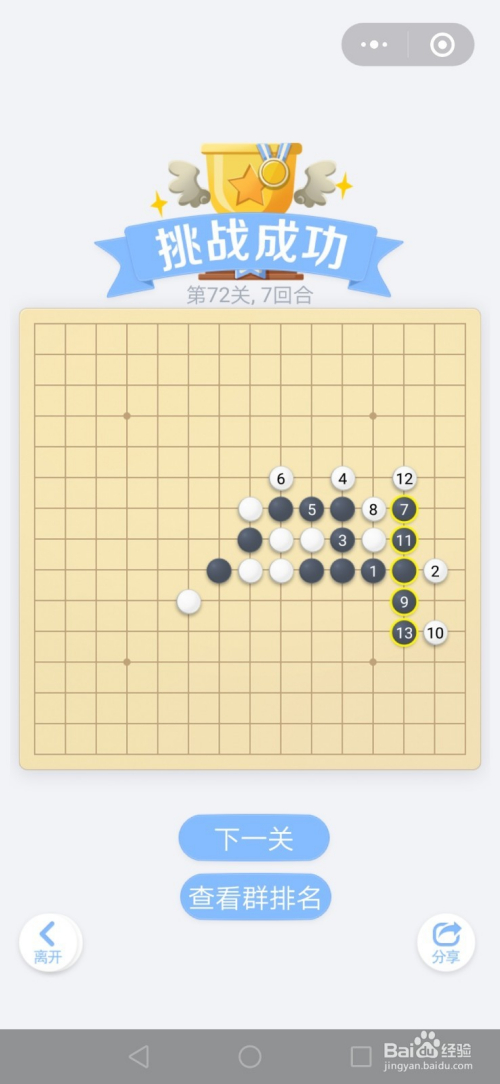 第74关按照下图中黑棋上的数字挨次下棋就能过关。
