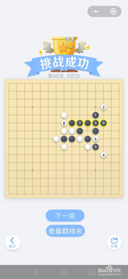 第60关按照下图中黑棋上的数字挨次下棋就能过关。