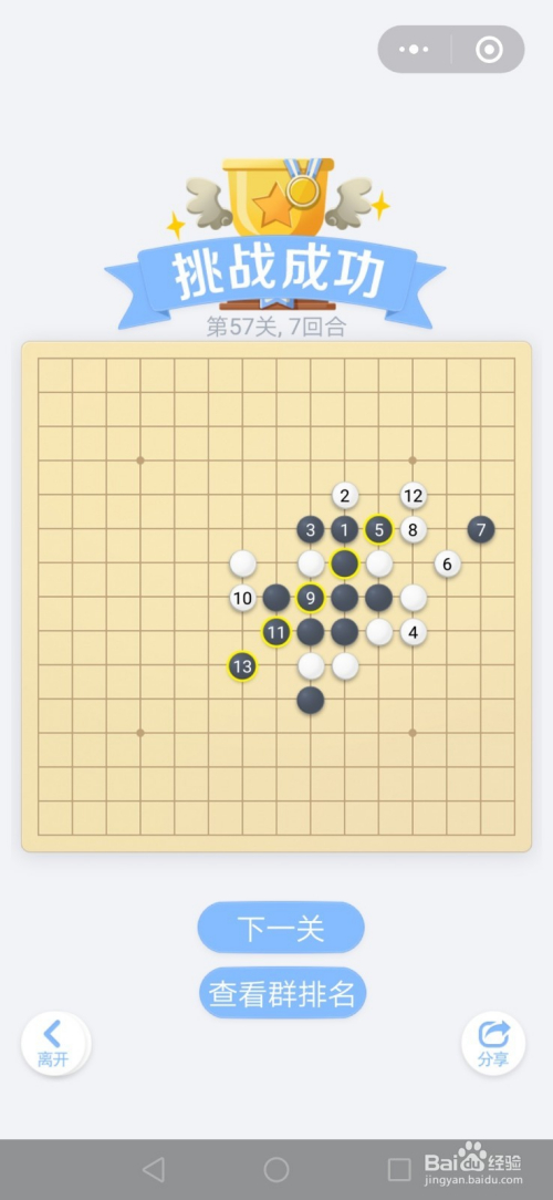 第57关按照下图中黑棋上的数字挨次下棋就能过关。