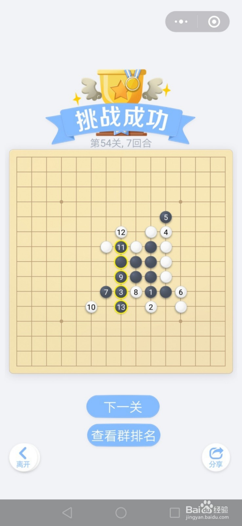 第54关按照下图中黑棋上的数字挨次下棋就能过关。