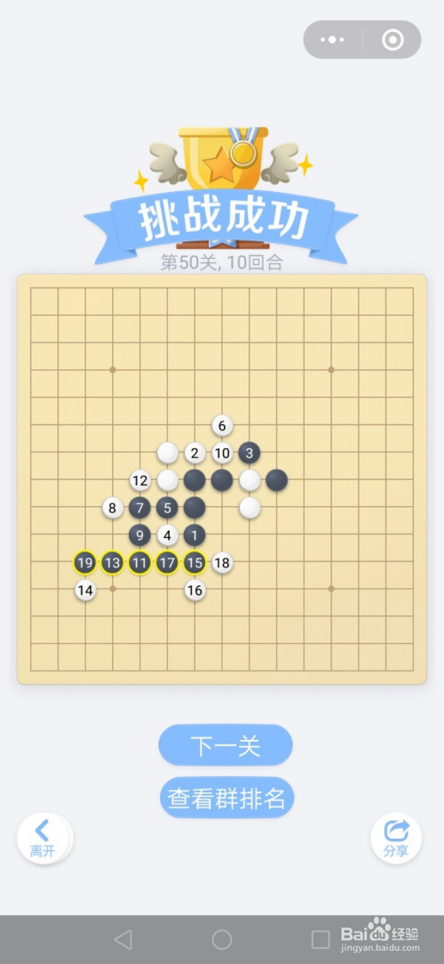 第50关按照下图中黑棋上的数字挨次下棋就能过关。