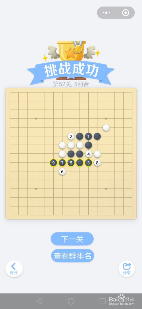 第52关按照下图中黑棋上的数字挨次下棋就能过关。
