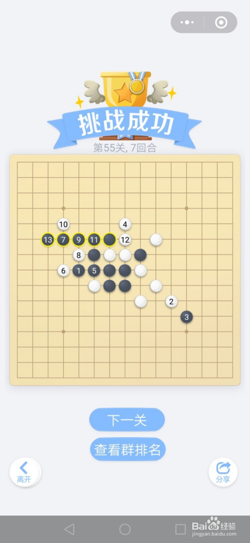 第55关按照下图中黑棋上的数字挨次下棋就能过关。