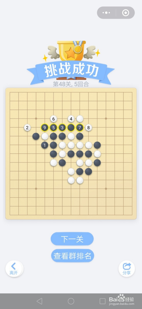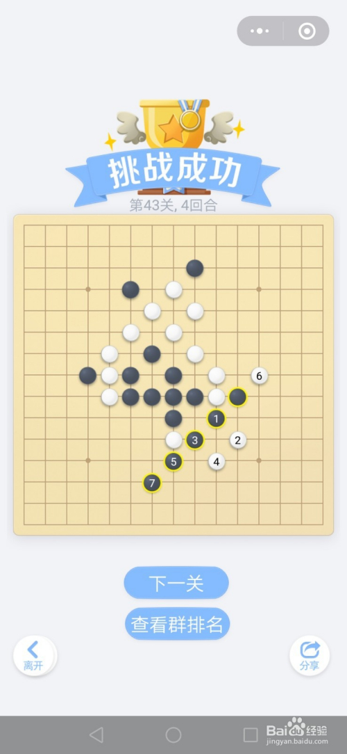 第43关按照下图中黑棋上的数字挨次下棋就能过关。