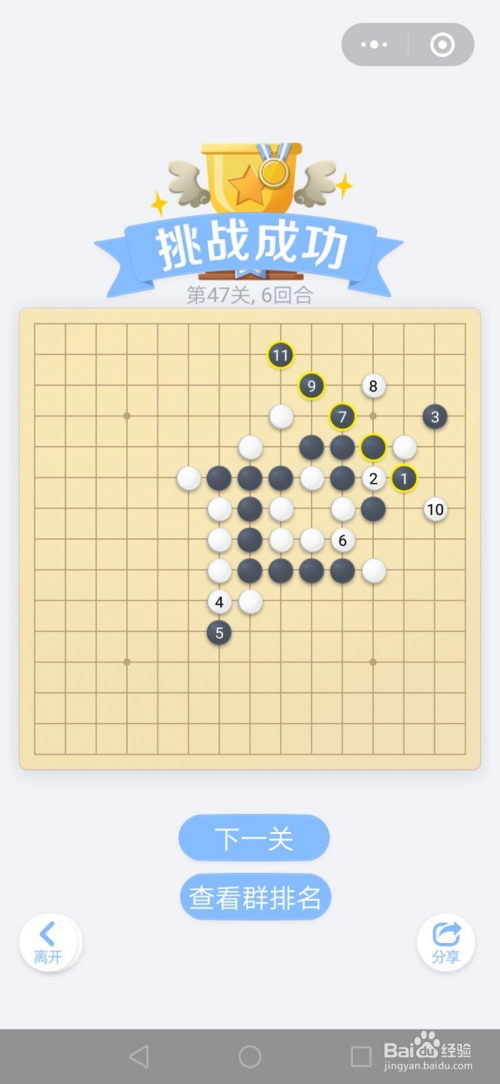 第47关按照下图中黑棋上的数字挨次下棋就能过关。