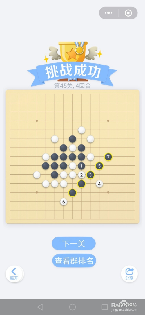 第45关按照下图中黑棋上的数字挨次下棋就能过关。