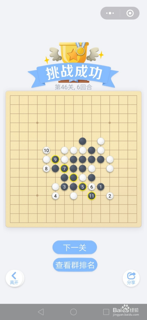 第46关按照下图中黑棋上的数字挨次下棋就能过关。