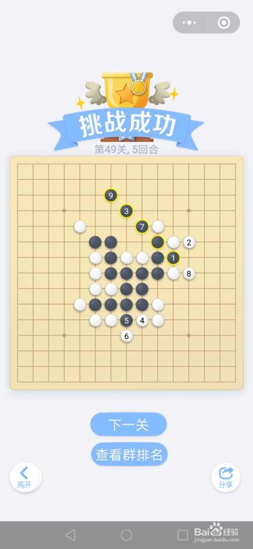 第49关按照下图中黑棋上的数字挨次下棋就能过关。