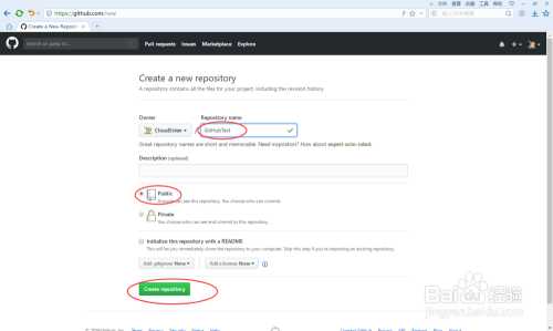 输入Repository name,然后点击“Create new repository”,如下图所示: