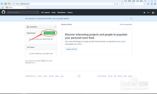 点击“Delete this repository”后,我们输入要删除的repository的名称,即可删除该repository,如下图所示: