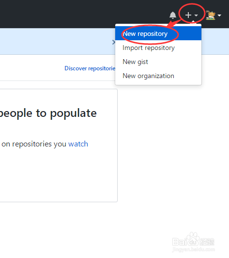 或者点击右上角的+号,睁开选择“New repository”,如下图所示: