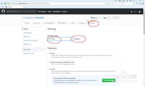 点击“Settings”,我们可以再次点窜该Repository的名称,如下图所示: