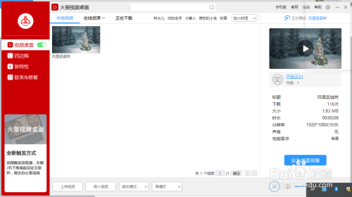 然后选择该视频,再点击右下角的设置桌面布景,将其设置为桌面