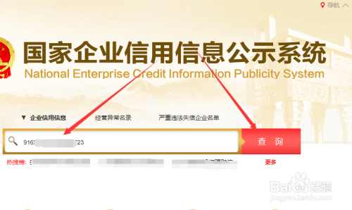 接着我们在搜索框输入阿谁同一社会信用代码