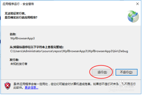 因为WPF是客户端应用,在浏览器端运行有平安提醒,我们点击“运行”,如下图所示: