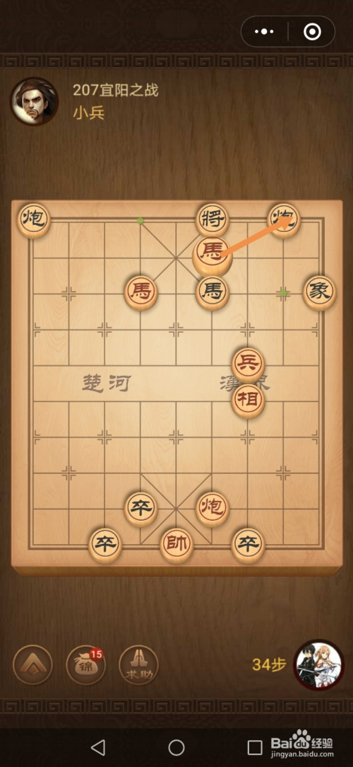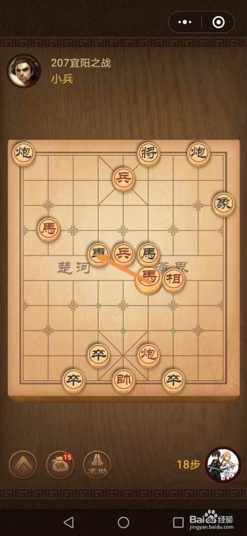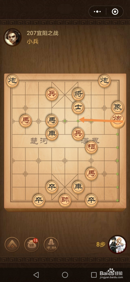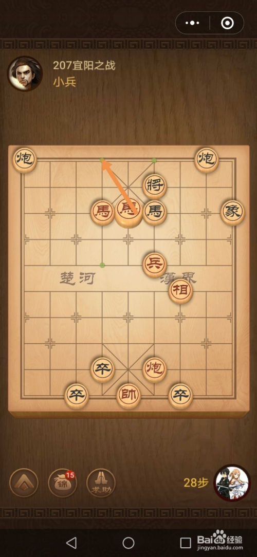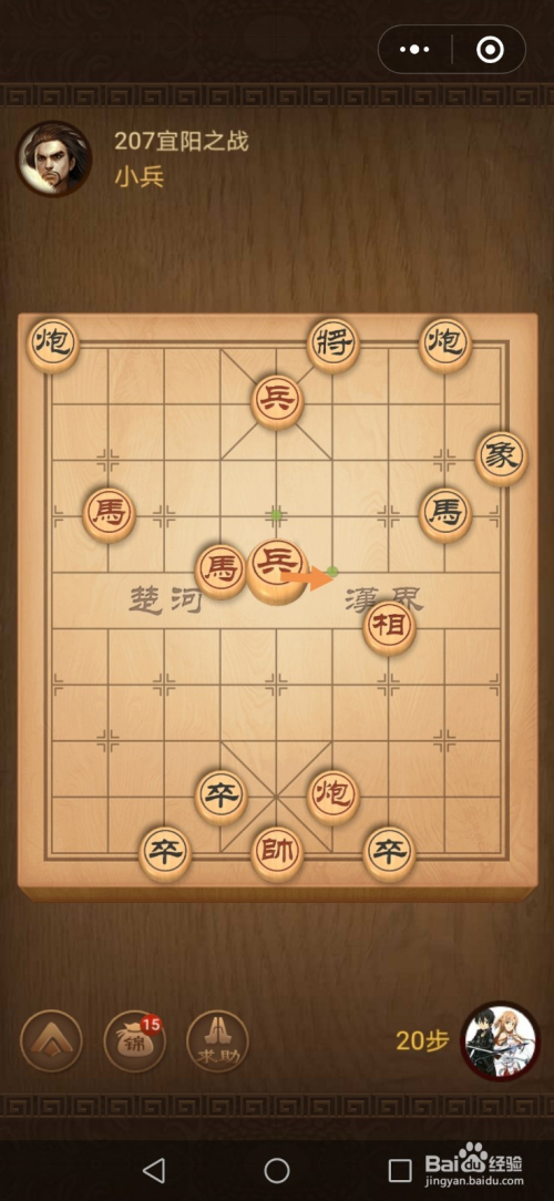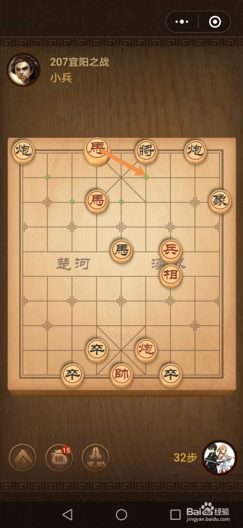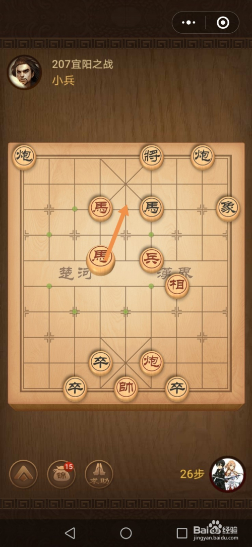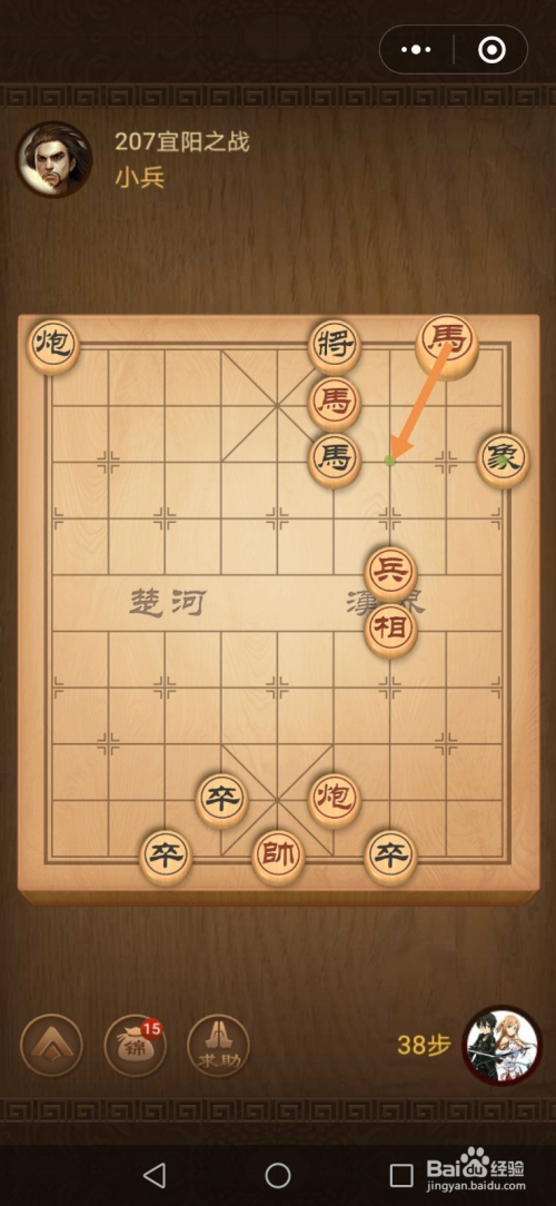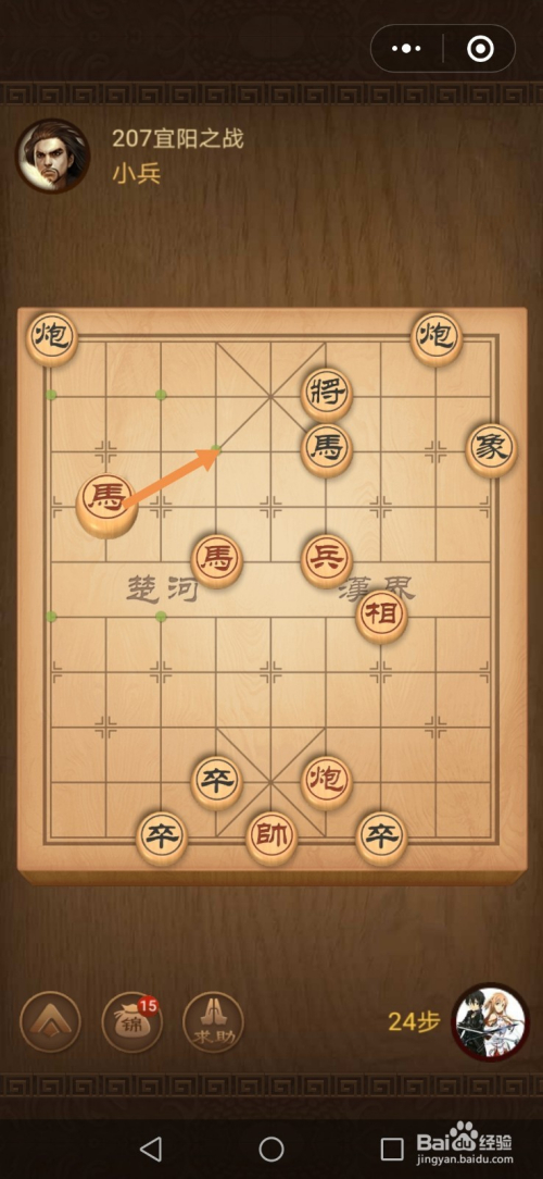第二十步馬移动到下图中箭头标注的位置就过关了。