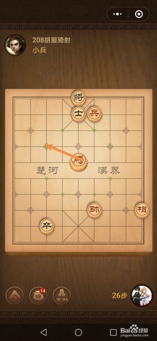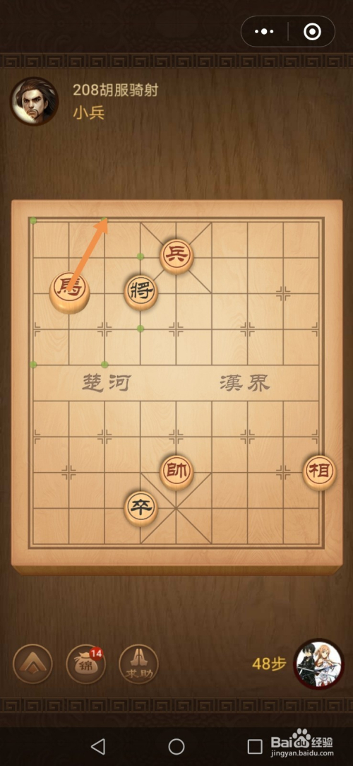 第二十五步馬移动到下图中箭头标注的位置就过关了。