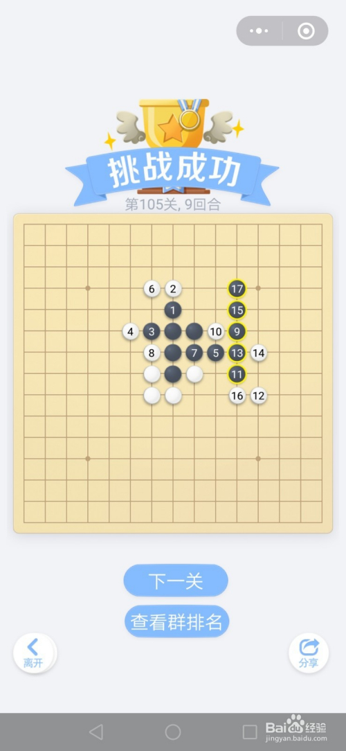 第105关按照下图中黑棋上的数字挨次下棋就能过关。