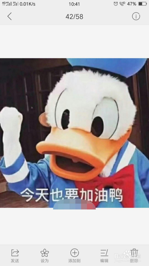 第四步,点击底部的"设为",若是下面的菜单栏被埋没,点击图片中心一次,挪用出下面的菜单栏