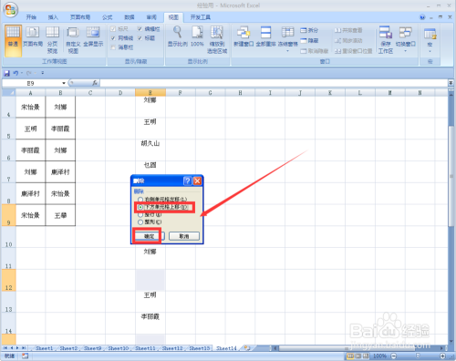 选中“下地契元格上移”后单击“确定”即可