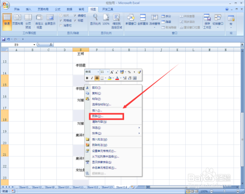 把鼠标放在肆意空值单位格,利用鼠标右键,单击“删除”
