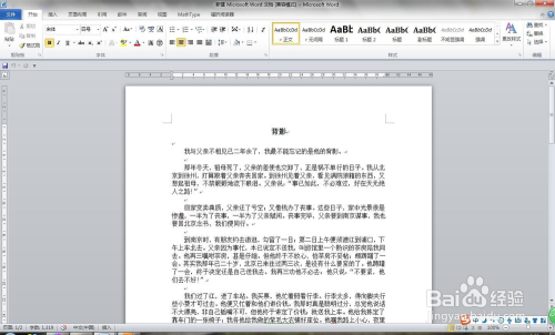 第一步:打开想要打印当作图片的Word文档,这里为了演示,提前抄录了朱自清的散文《背影》。
