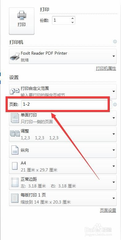 然后选摘要打印的规模,在“设置”选项里面进行选择,若是只打印当前页,那就选择“打印当前页面”,这里我们打印指定页面,选择“打印自界说规模”。然后输入页码。
