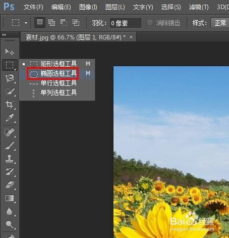 第三步:在左侧东西栏中选择“椭圆选框东西”。