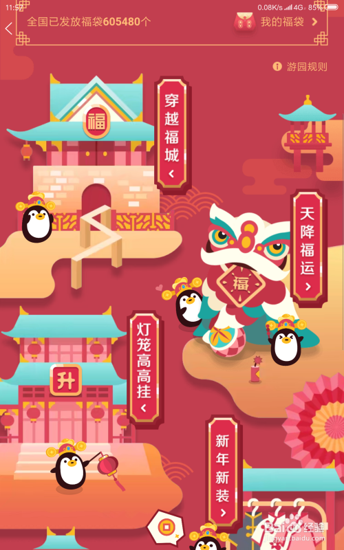 在页面的右上角就可以看到有一个新春福袋的图标,在聊天页面往下方滑动