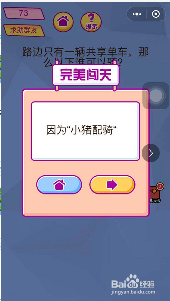 第73关:路边只有一辆共享单车,下面谁可以骑?