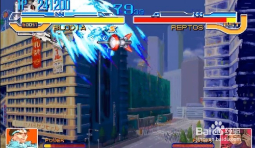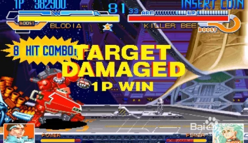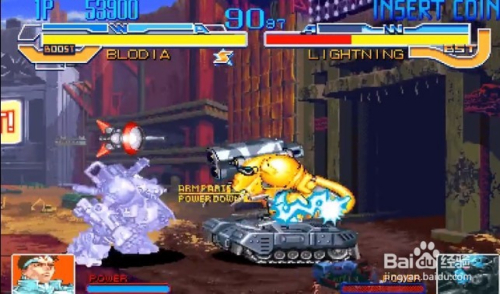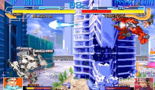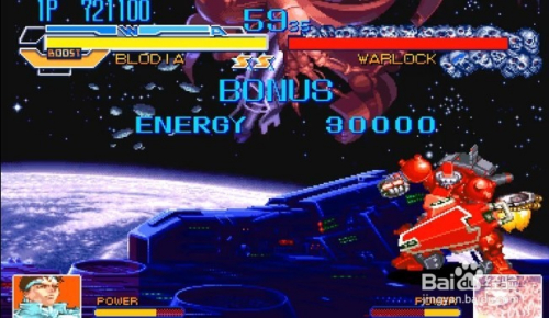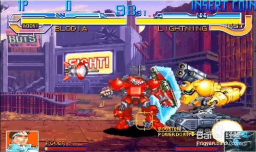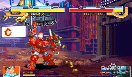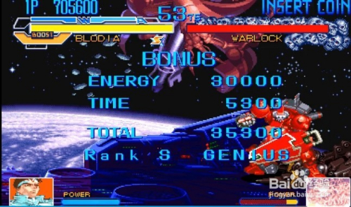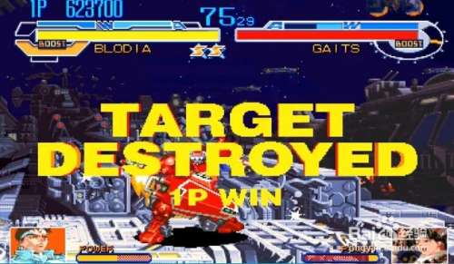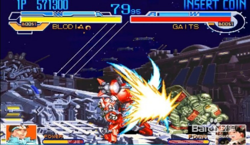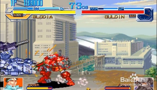 首先运行游戏,投币,选择第一小我物,选择第一个红色机甲BX-02 Blodia