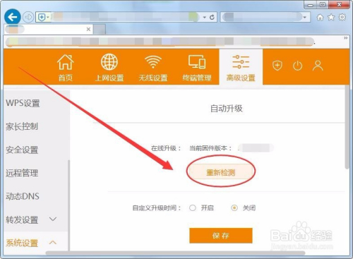 主动进级窗口中,单击从头检测按钮,进级固件。