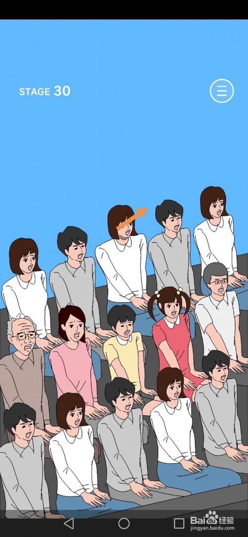 第30关一向点击手机屏幕直到画面转到舞台为止,等画面回到不雅众席,标的目的右滑动不雅众席最后一排中心的女人头部就过关了。