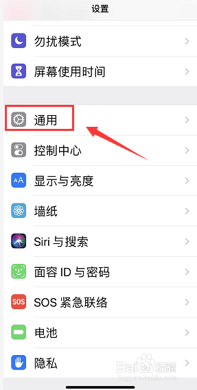 设置界面点击通用进入,如下图所示
