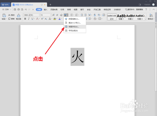 如图,点击下拉菜单里面的“带圈字符”栏。