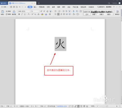 选中要添加圆圈的文字。每次只能给一个文字添加圆圈,所以只能选中一个文字。