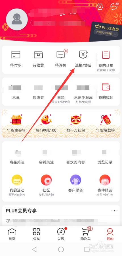 在京东我的界面里直接点击【退换/售后】选项,如下图所示。