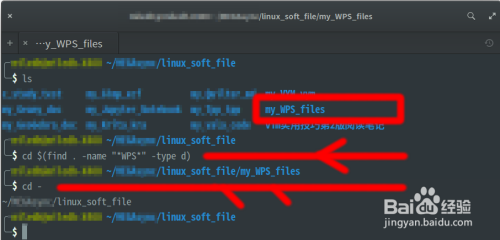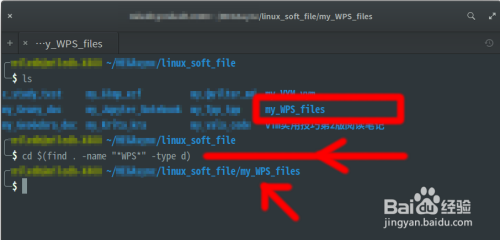 输入如许一行号令「cd $(find . -name"*WPS*" -type d)」并回车,即可。