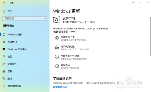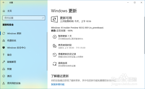 进级 Windows 10 Insider Preview 18312.1001 (rs_prerelease) 系统