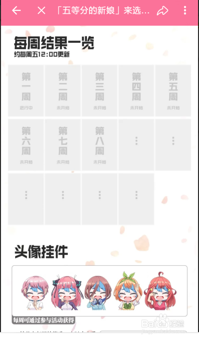 我们还可以看到每周的投票成果,加入投票后我们还有可能获得动漫挂件
