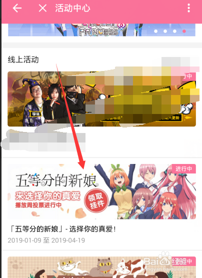 然后大师在活动列表中找到阿谁【五等分的新娘选择你的真爱的投票活动】的图片,打开它