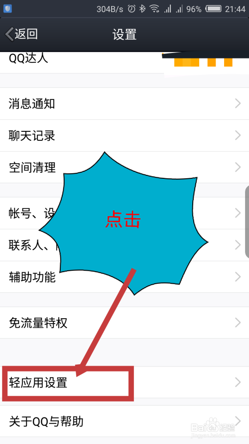 在打开的设置界面,需要滑动屏幕,在设置界面的最下面,点击轻应用设置选项。如图所示