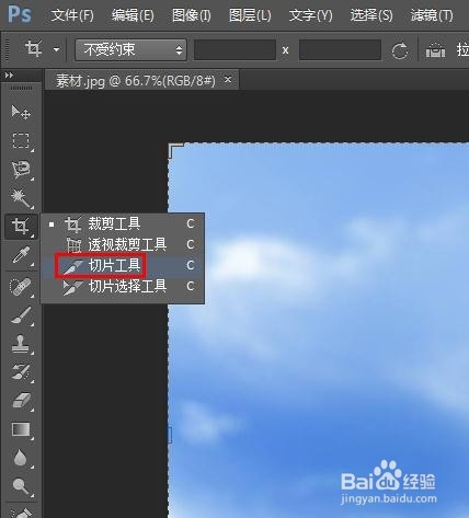 第二步:在左侧东西栏中选择“切片东西”,选择图片中要切片的区域。