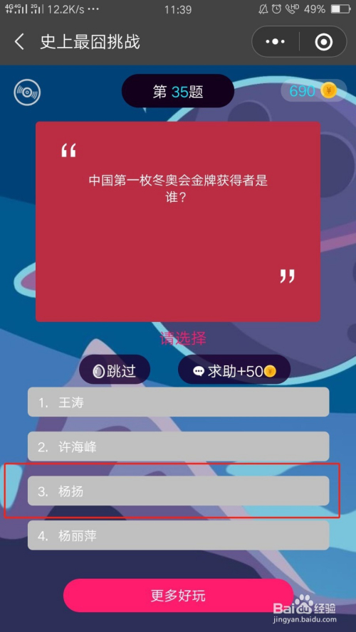 史上挑战最囧第三十五关过关攻略:选择第三个选项:杨扬