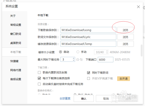 然后要更改目次,点击【下载设置】,点击【下载歌曲保留到】【浏览】。