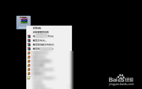 然后此时桌面压缩文件,不被软件联系关系了的,如下图。当然了右键还有菜单是因为软件未卸载。