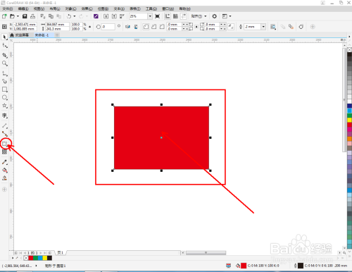 选中矩形图案,点击【变形东西】,鼠标点击图案中间点往左拉动,绘制出一个变形图案;鼠标往右拉动,绘制出别的一个变形图案(如图所示)。按同样的步调完当作圆形图案的变形操作;