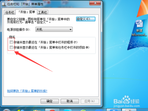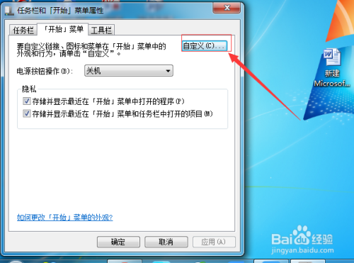 然后在点击点击“自界说”的选项。进行界说相关的选项,不再显示到开始菜单中